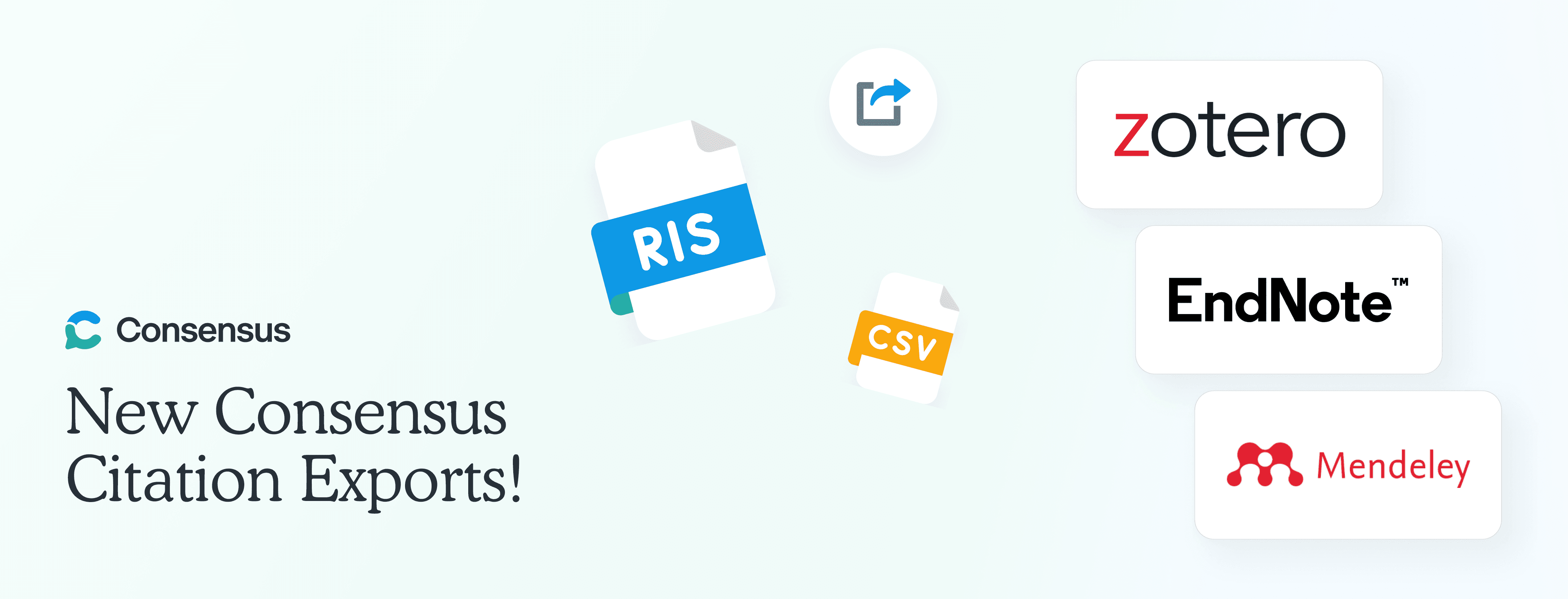 Managing your references from Consensus just got a whole lot easier! You can now export paper details from both search results and saved lists in CSV or RIS file formats. The addition of the RIS format unlocks your favorite reference managers: Endnote, Mendeley, and Zotero.