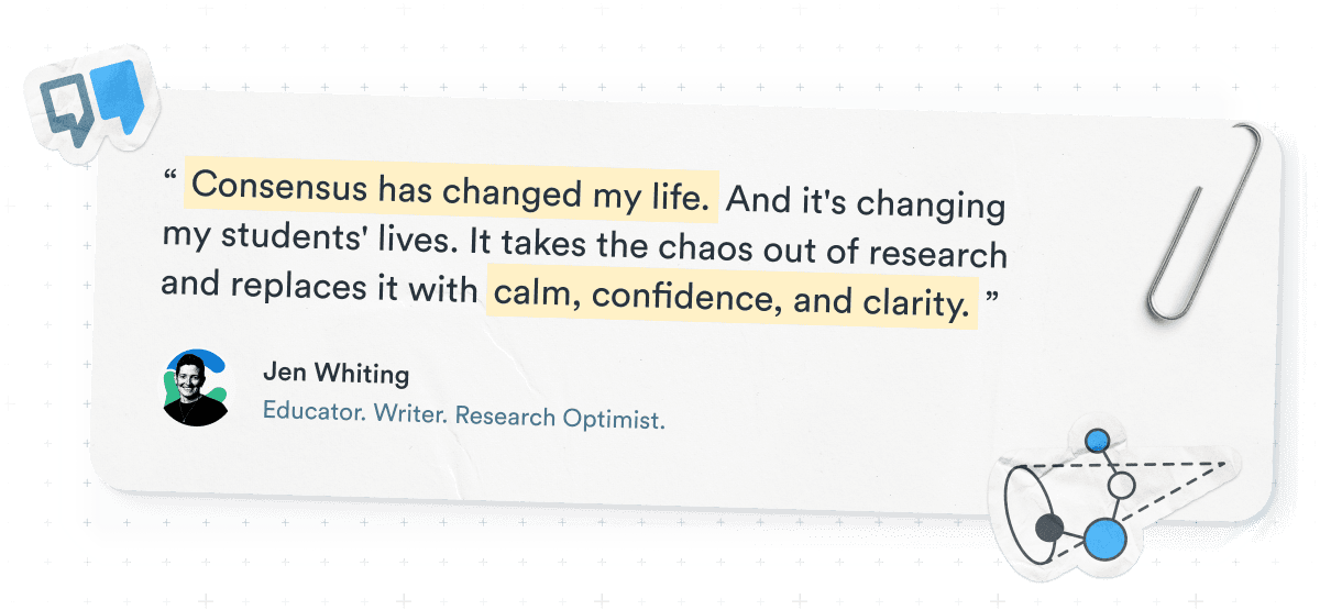 In Jen’s classes, Consensus is more than a tool. It’s a starting point that helps students move from confusion to clarity and gives them the confidence not just to find sources, but to think with them.